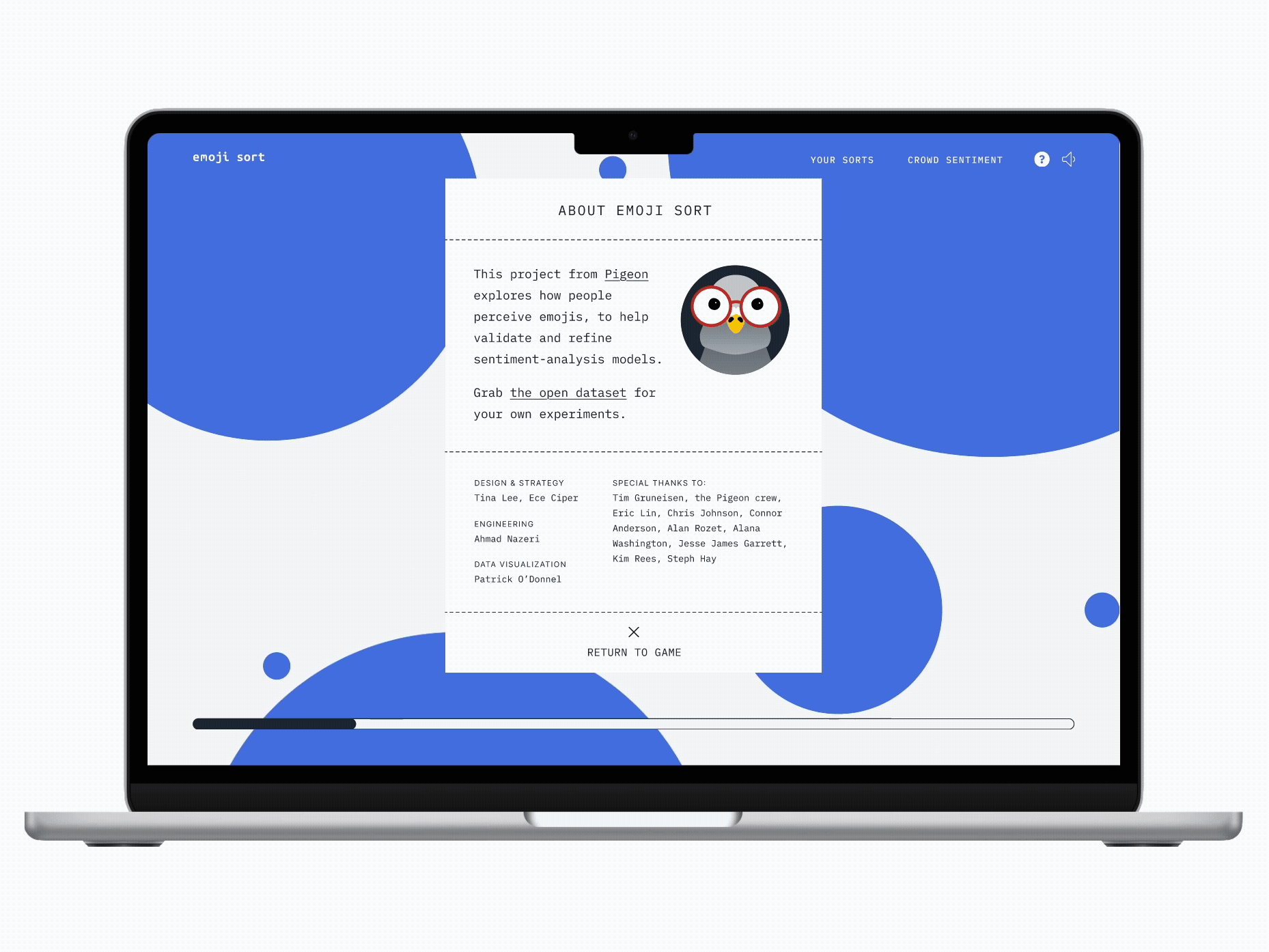 Designed, built, and asked 50K+ employees of Capital One on Slack to play a game: Emoji Sort. The data generated helped Slack admins get more accurate insights into topics and moods of their audience.