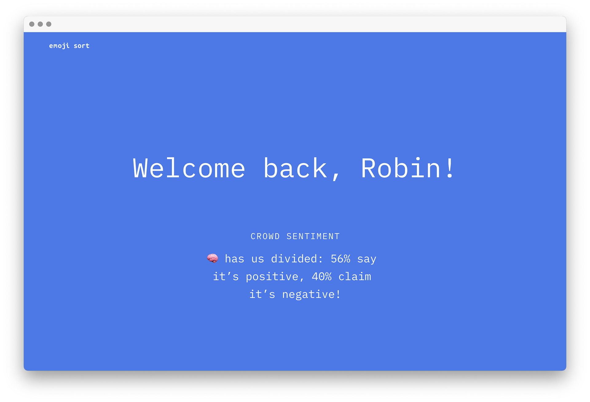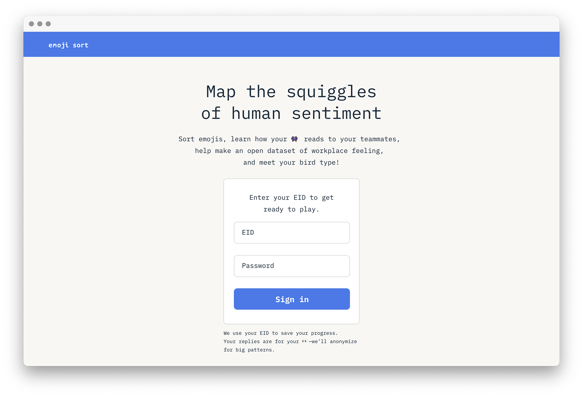 Emoji Sort is a lighthearted desktop game asking employees to tell us their gut feeling about the standard and custom emojis used in the database. The data generated by this game feeds into the sentiment analysis models of the internally developed Slack bot–Pigeon, making it smarter at understanding emoji-based responses accumulated in Slack channels it lives in. Team Composition
